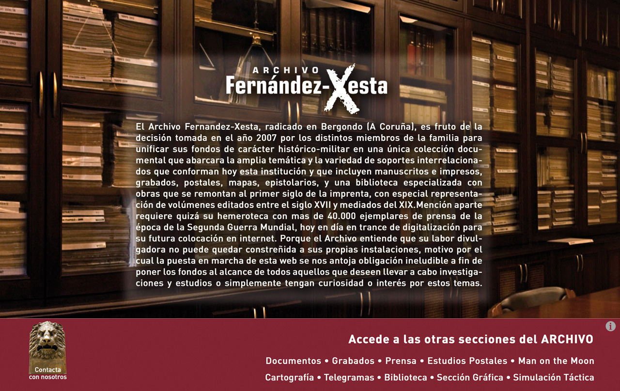 Hemos incluido en esta sección de la web algo mas de doscientos mapas de un periodo que abarca desde el siglo XVI a mediados del XIX. La sección se subdivide a su vez en un apartado de Cartografía del Mundo, otro dedicado a la cartografía específicamente española y, por último, un apartado en el que figuran mapas y croquis tanto de batallas como de otra temática de índole histórica o militar.